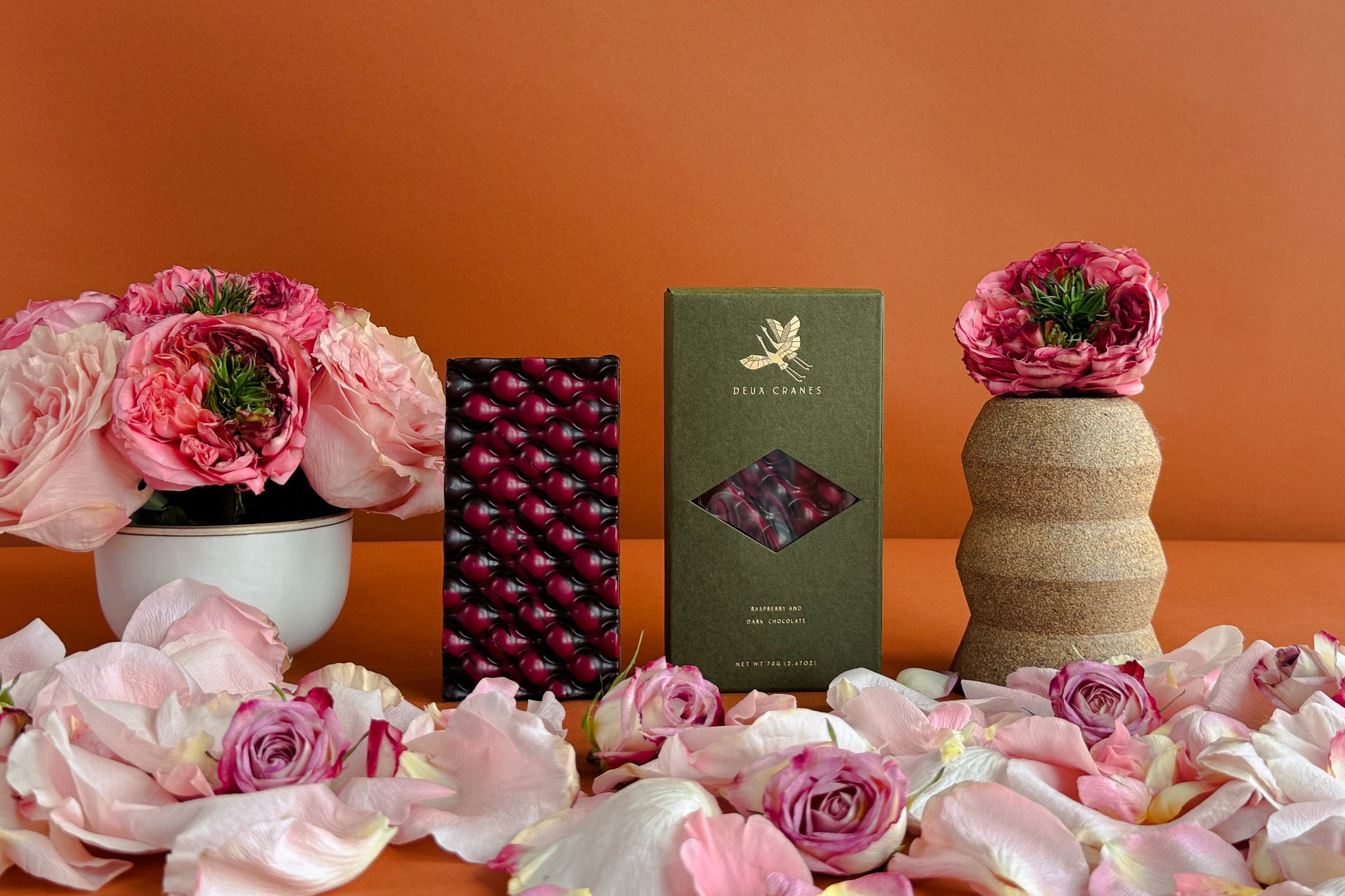 Bright, tart raspberry meets rich 70% dark chocolate in this handcrafted bar made entirely with premium Valrhona chocolate. Bursts of tangy raspberry cut through deep cocoa notes, creating a perfectly balanced indulgence for dark chocolate lovers.